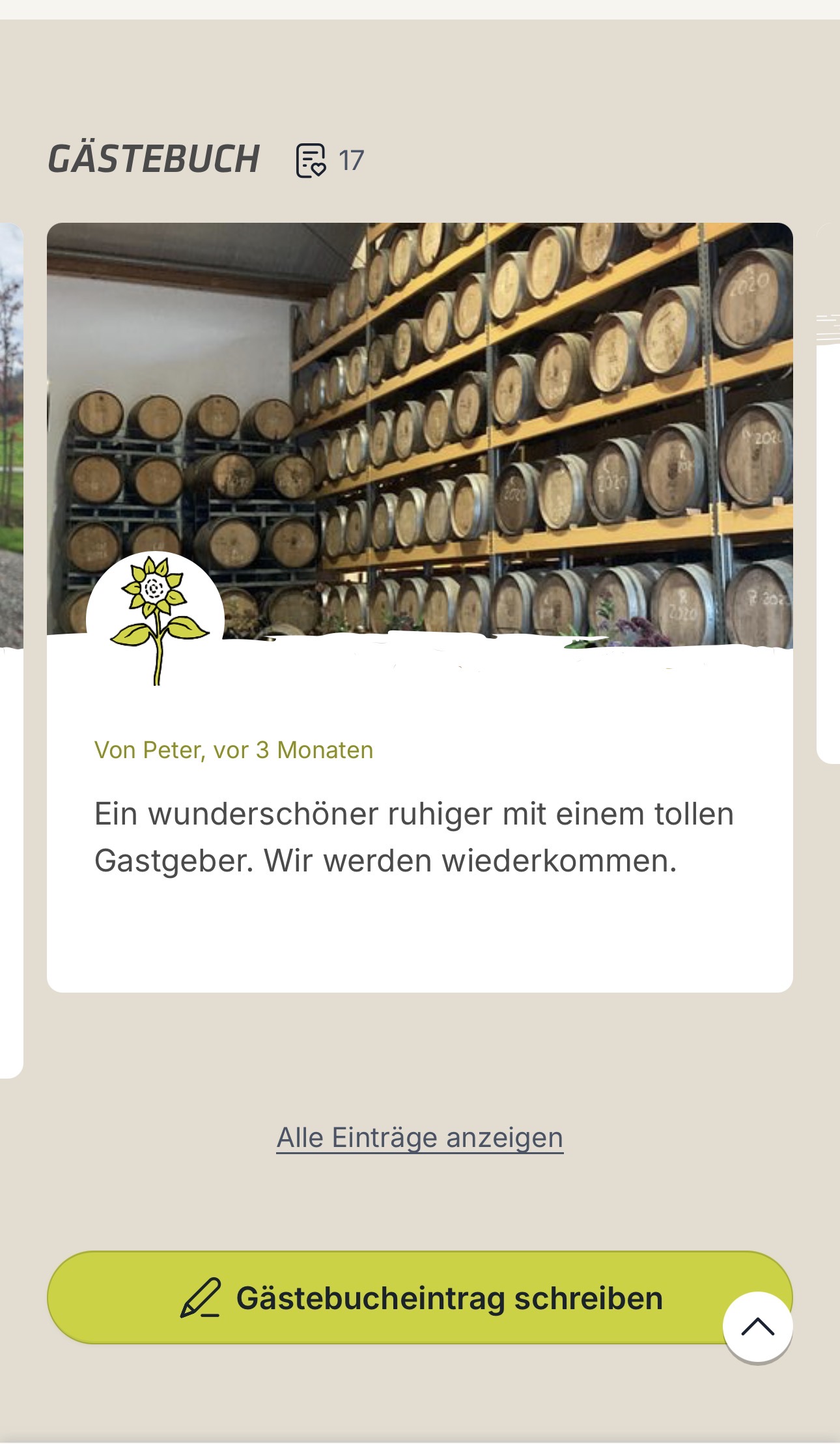 Reisende können über Ihren Besuch bei Ihnen Gästebucheinträge verfassen, die sie bebildern können. Unsere Botschafter schreiben nach Ihrem Besuch bei Ihnen ebenso einen kleinen Bericht, sodass sich die Reisenden davon inspirieren lassen können.