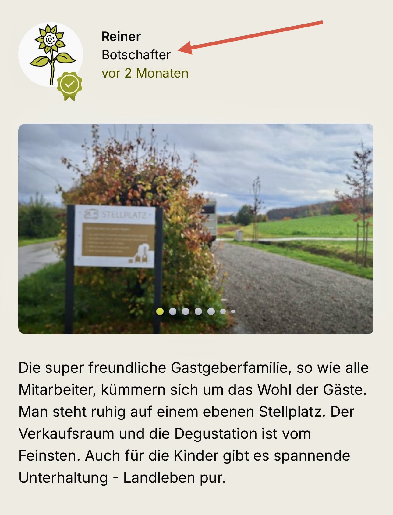 Sowohl die Gästebucheinträge der Reisenden, als auch die Botschafterberichte, finden Sie direkt in Ihrem Hofeintrag der App. Loggen Sie sich mit Ihrer Mail-Adresse und Ihrem Passwort in die App ein und suchen Sie Ihren eigenen Eintrag. Die Gästebucheinträge sind zu Beginn des Eintrages verlinkt - scrollen Sie ganz hinunter, sind alle Berichte zu finden.