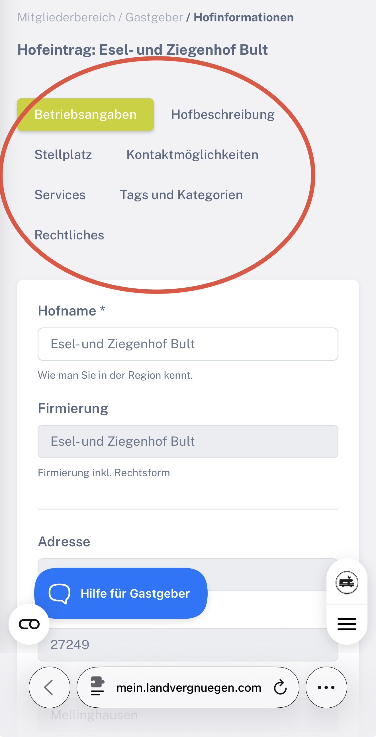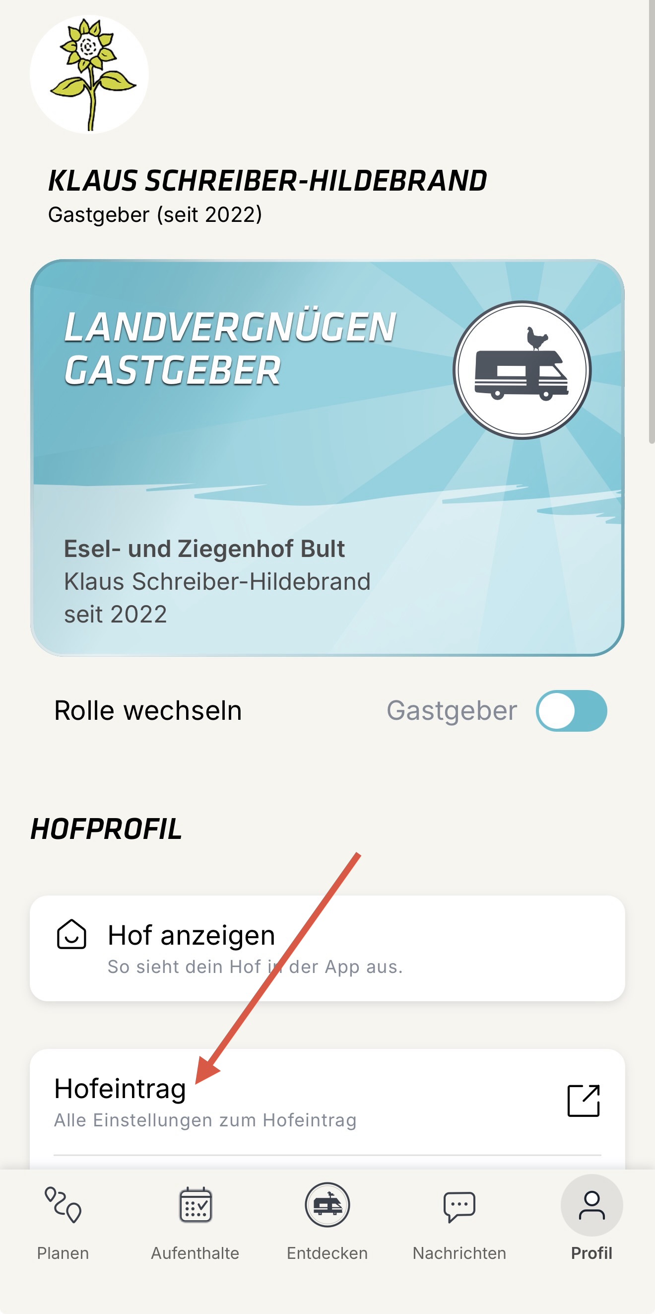 Kann ich die Hofdaten auch direkt in meiner Gastgeber-App ändern?
